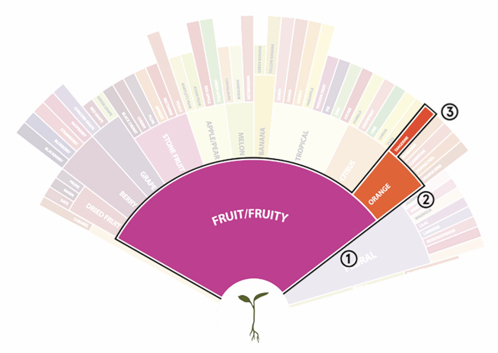 1. Parent Group: These are the foundational aromas and represent the broadest categories such as fruity, floral, and earthy.