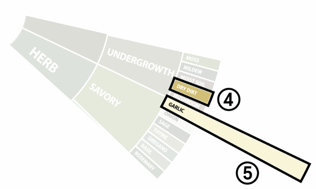 Tertiary aroma = Last descriptor is the most faint and fleeting aroma, but present